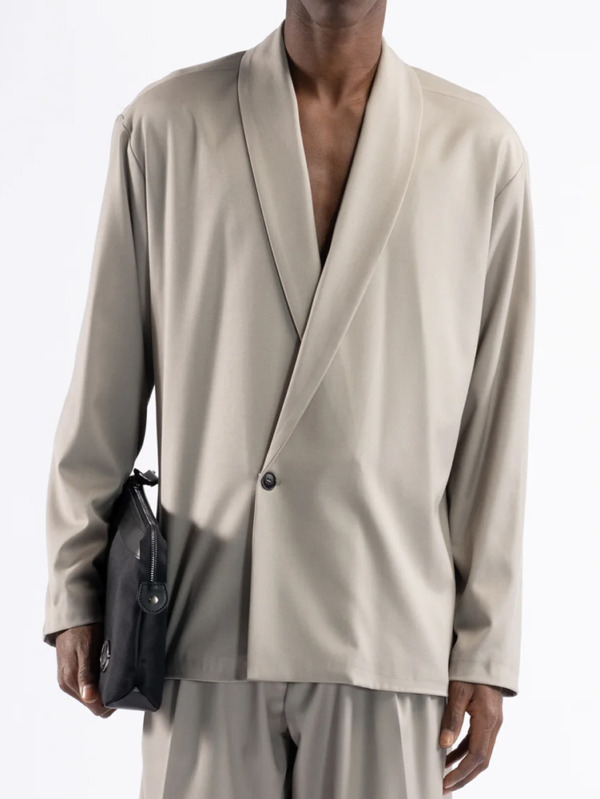 ショールカラーで首元がすっきりし、テーラードほど堅くないのに、大人らしい印象に仕上がります。