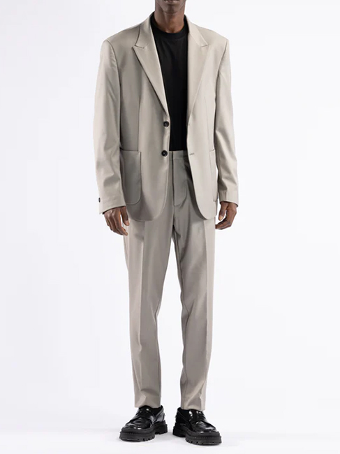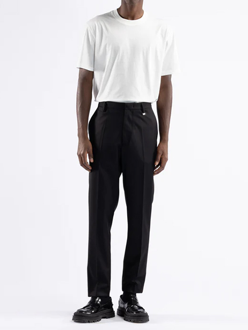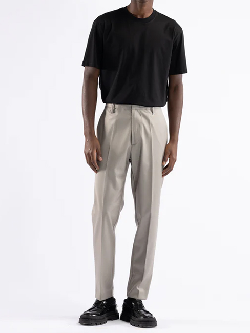 シャツ地のように軽く、パンツとしてはしっかりと体型を整える――そんな理想を叶える一着です。