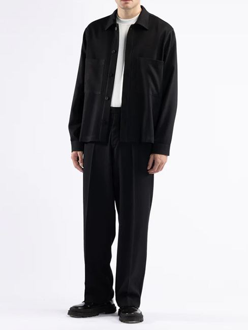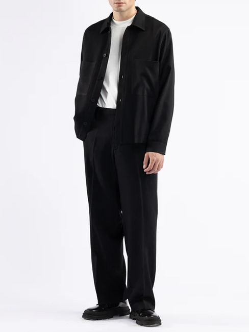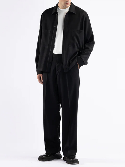 深みのあるブラックに、ミストウールならではの柔らかな表情が重なる──