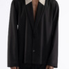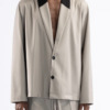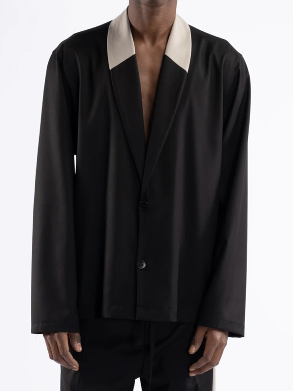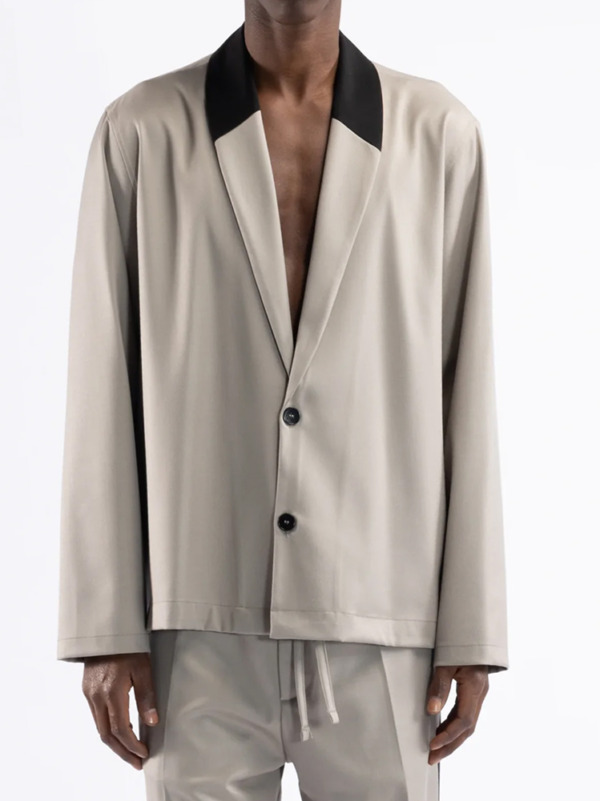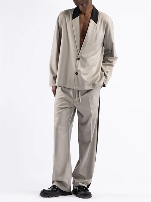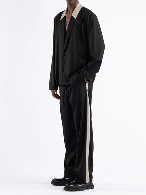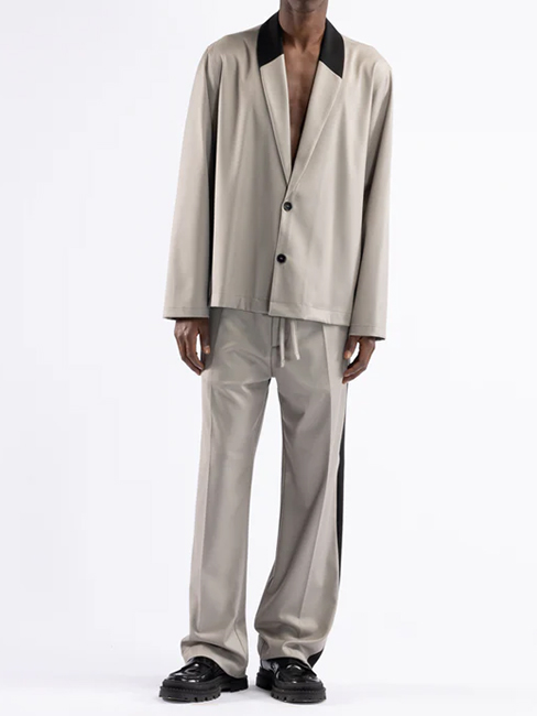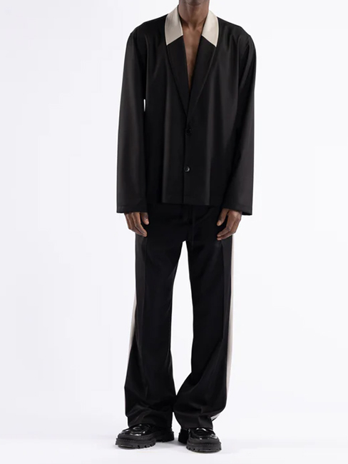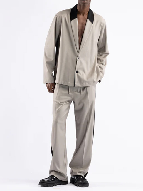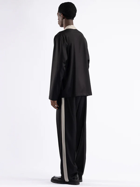 襟元と前立てにコントラストカラーを配し、シンプルな中にもディテールのこだわりを感じさせます。